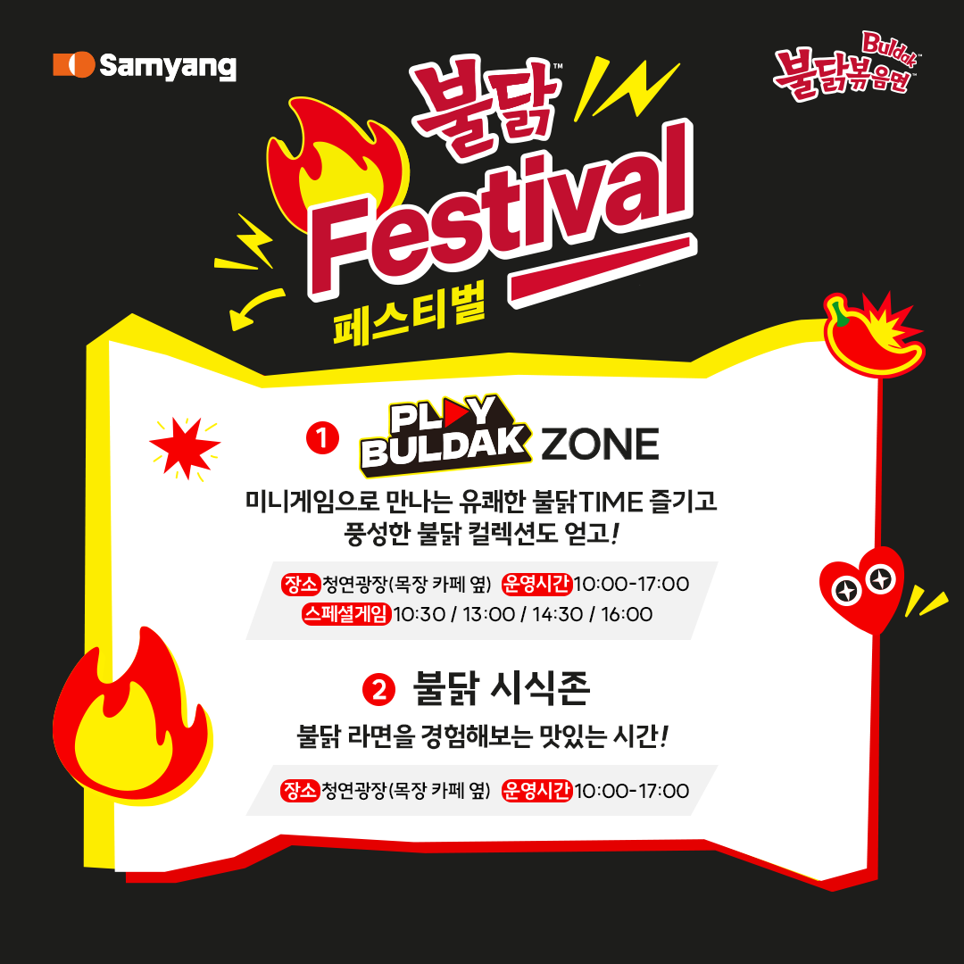 -불닭타워게임 : 10시 30분, 13시, 14시 30분 ,16시 (현장에서 참여예약)